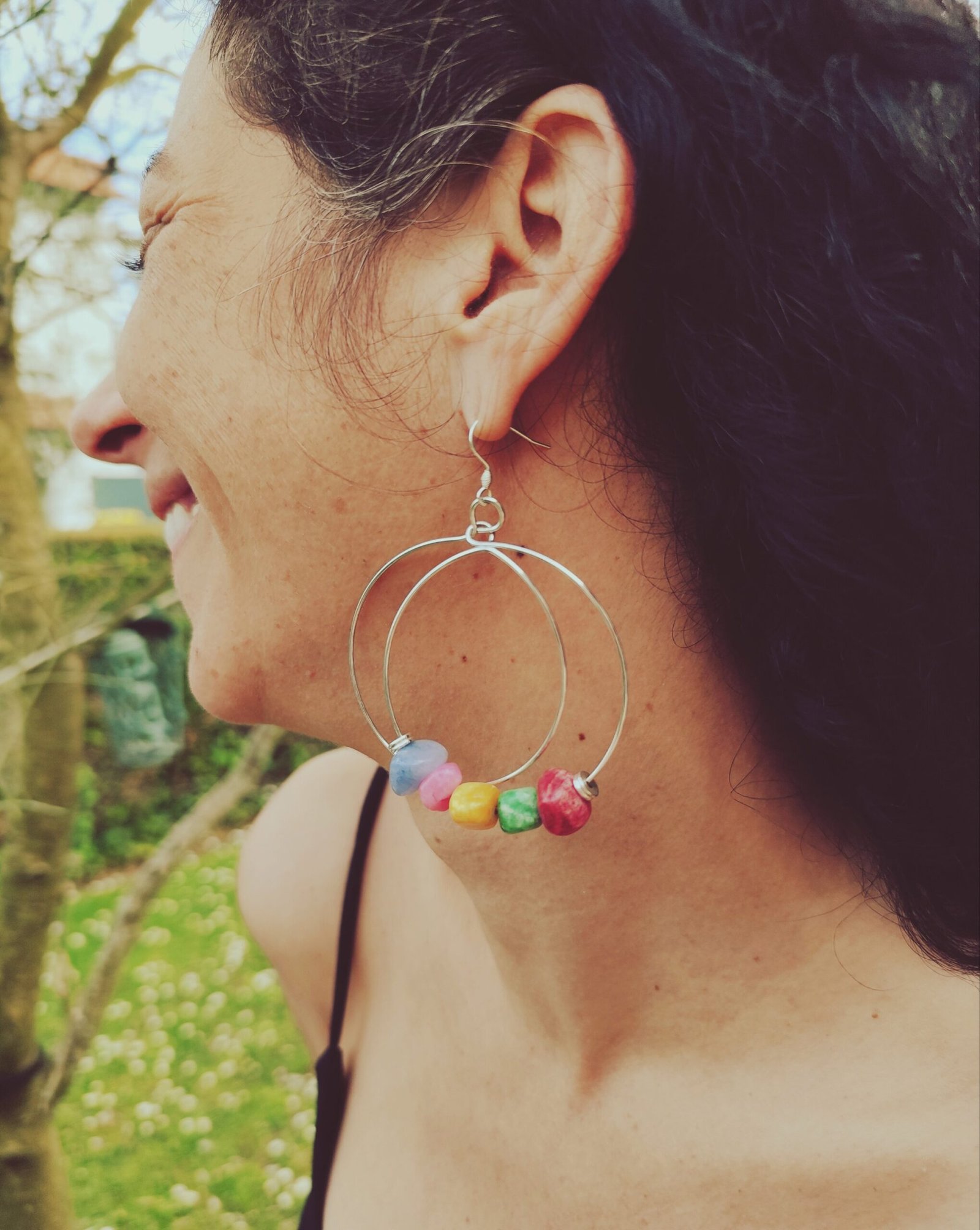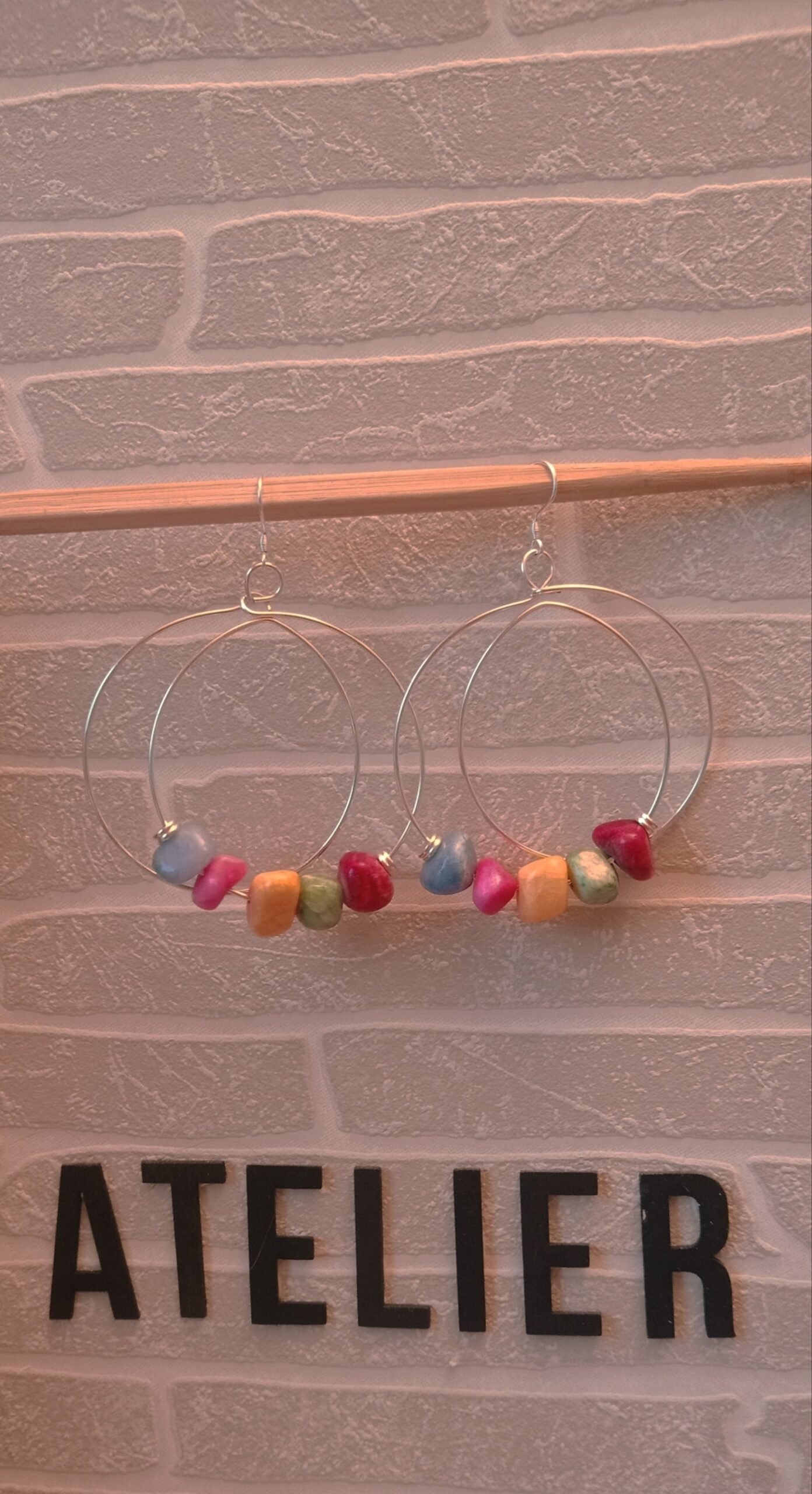Boucles d’oreilles en acier inoxydable argenté, faire le pépite en jade coloré.