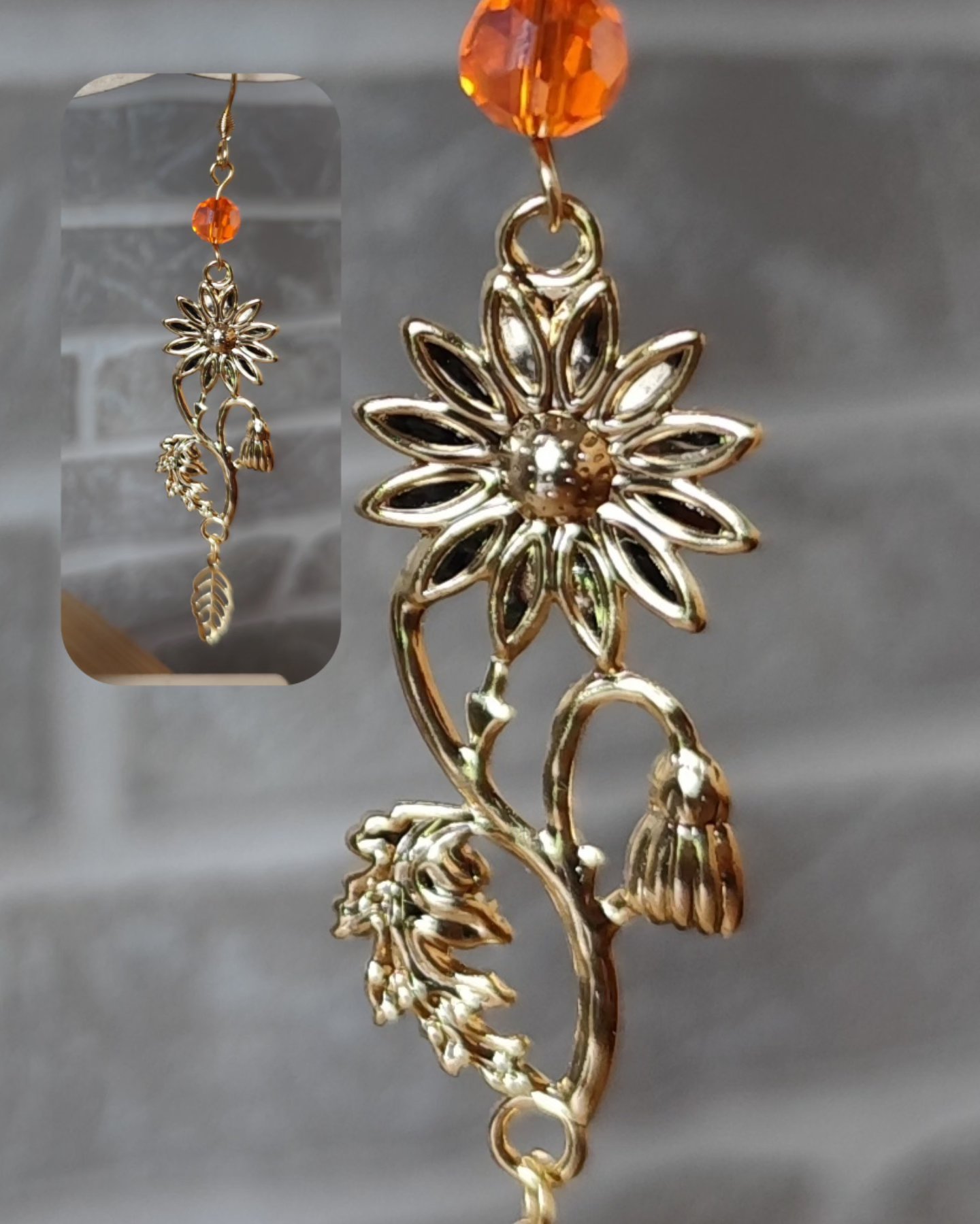 Boucles d’oreilles en acier inoxydable doré, perles en verre faceté orange